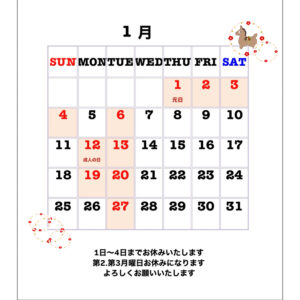1月のお休み - 秦野市の美容室フィールズヘアデザイン秦野市の美容室フィールズヘアデザイン