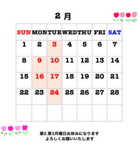 2月のお休み - 秦野市の美容室フィールズヘアデザイン秦野市の美容室フィールズヘアデザイン