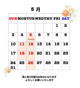 5月のお休み